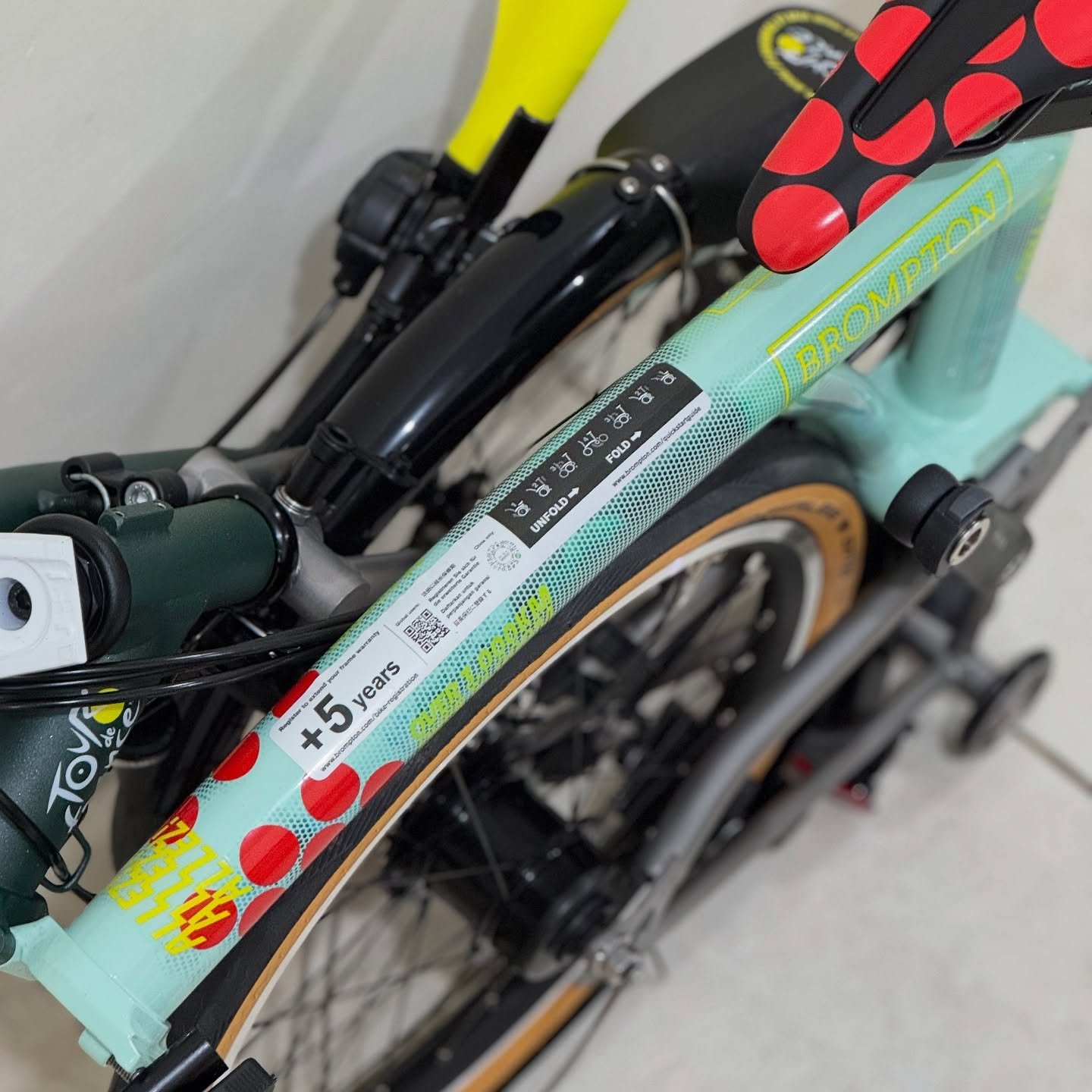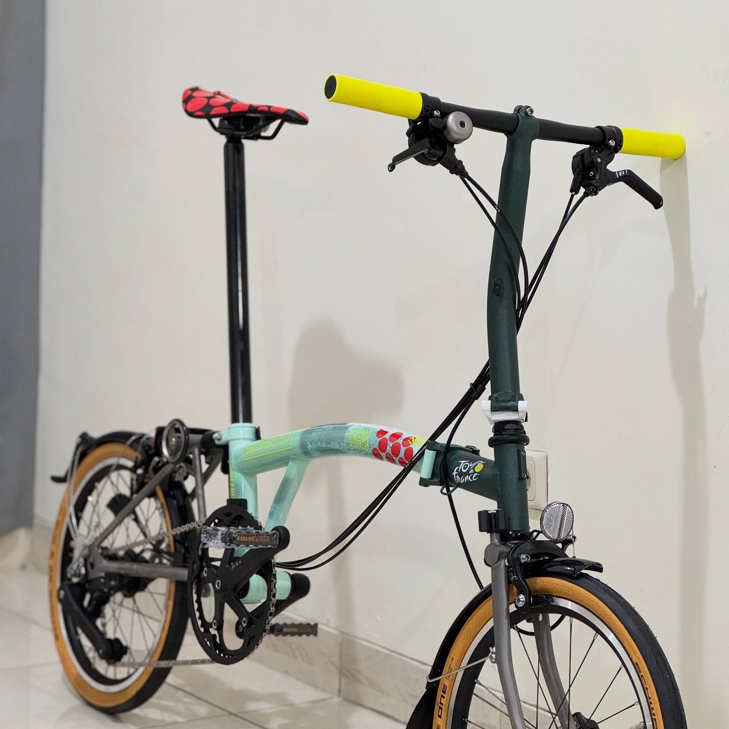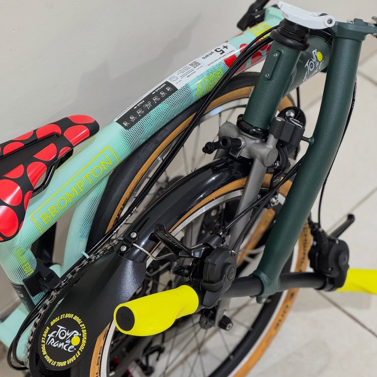 Detail eksklusif Tour de France edition seperti saddle khusus, mudguard flap, dan special decals menjadikan sepeda ini bukan hanya alat transportasi premium tetapi juga item koleksi yang sangat menarik bagi penggemar Brompton.